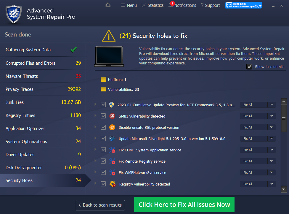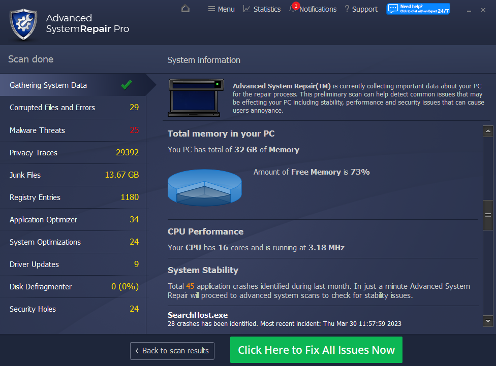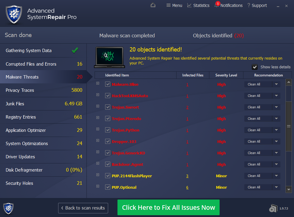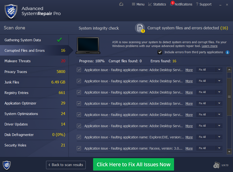 Advanced System Repair utilizes multiple tools all in one to give